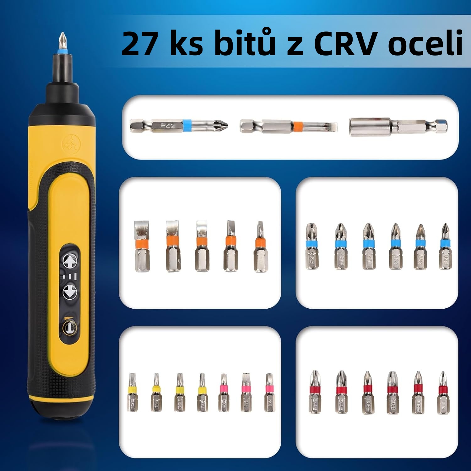 🔋 S USB nabíjením | 🔧 3 úrovně točivého momentu | 🪛 26 kvalitních bitů