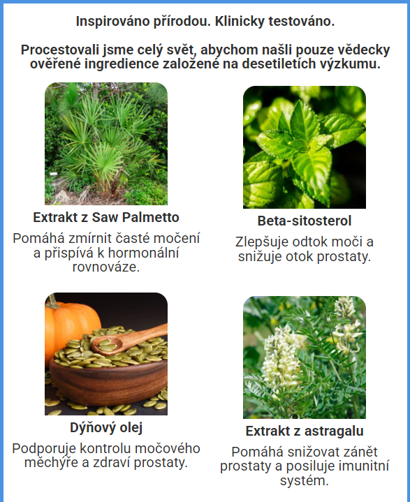 Odborně testované složení s vědecky ověřenými přírodními extrakty pro optimální zdraví prostaty a sexuální zdraví.