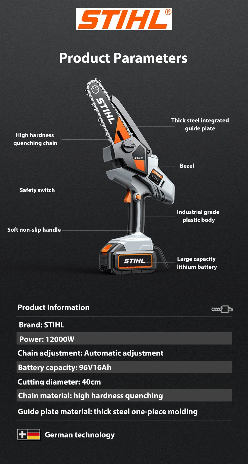 Přenosná řetězová pila STIHL 12000W s lithiovou baterií